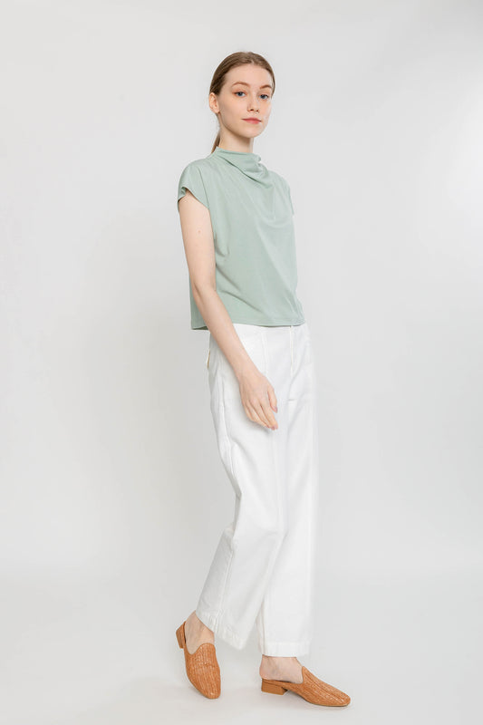 Cap-sleeve Ribbed Knit Tee - Light Jade