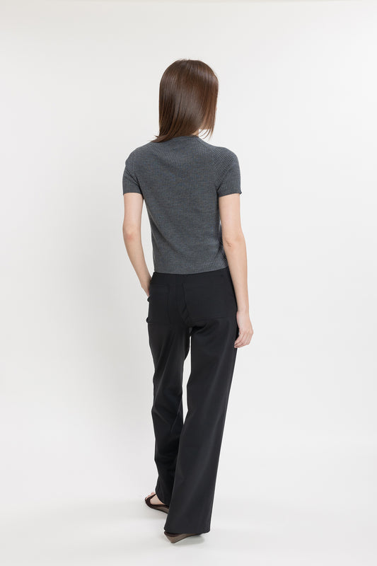 Short-sleeve Buttoned Knit Top - Shadow