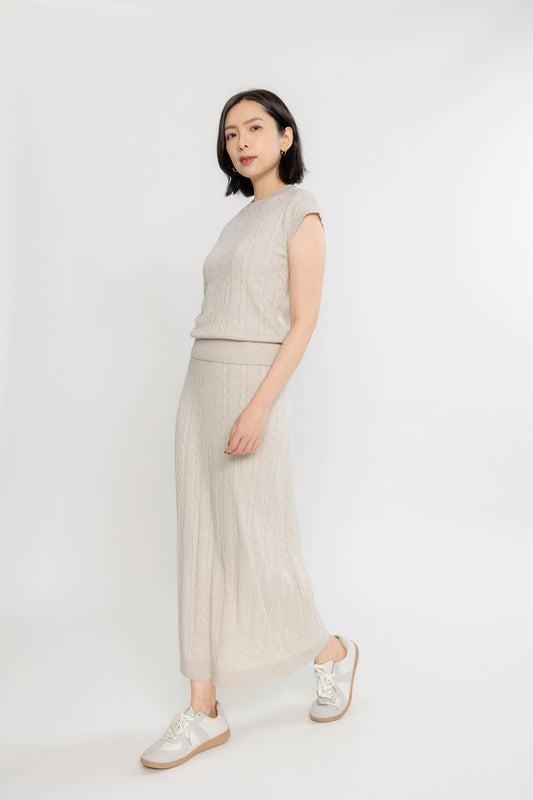 Midi Cable Knit Skirt - Wheat