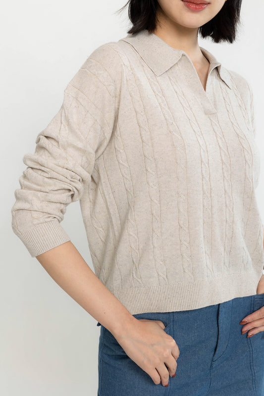 Easy Cable Knit Polo - Wheat