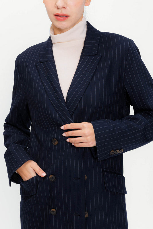 Double-breasted Wool Blazer-Coat - Navy Pinstripe