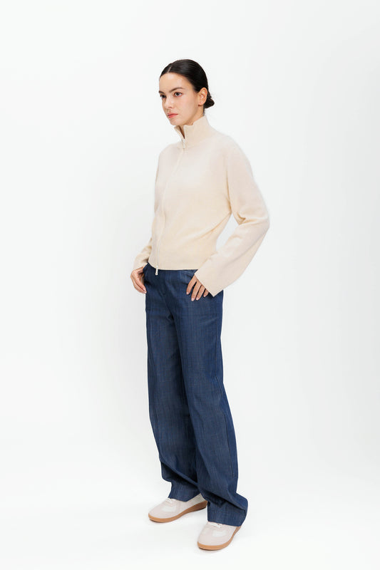 High-waist Wool Wide Trouser - Navy Pinstripe