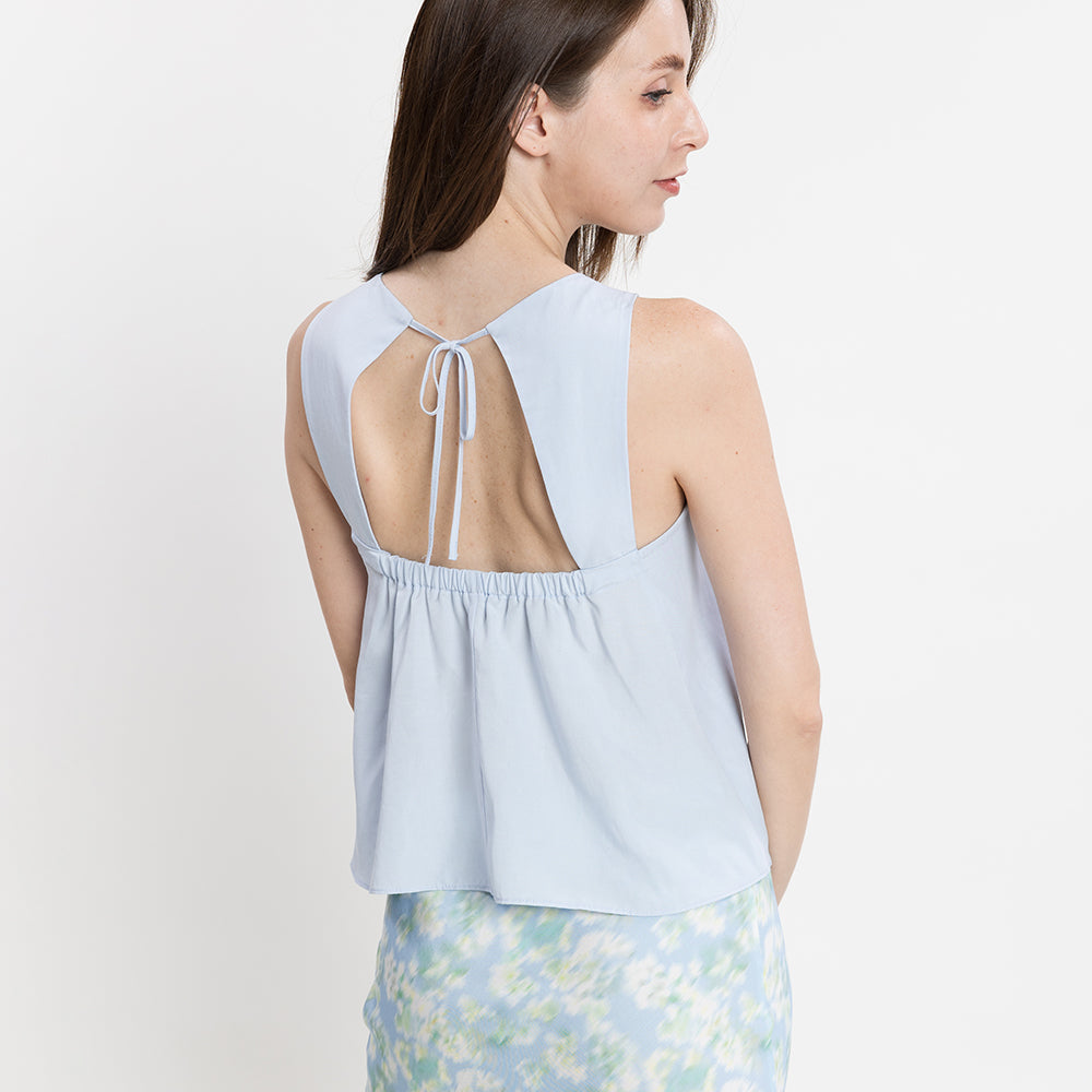 This contemporary swing top catches the eye with a chic cutout detail at the back, secured by a delicate tie closure. Made from sustainable Tencel-linen fabric, it offers a graceful drape and refined comfort. Perfectly paired with the Asymmetrical Tencel Skirt, it transitions seamlessly from a relaxed brunch to an elegant date night.