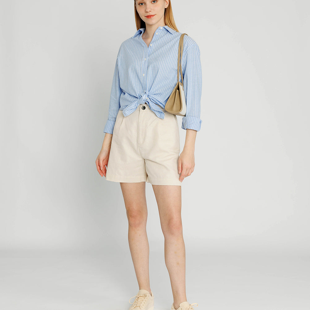 Our Tailored Shorts are the perfect item to get you through hot weather in style. These easygoing shorts are the definition of summer chic in breezy cotton-linen. The high-rise pleated fit ensure you’re just as comfortable running errands around town as you are kicking back on the beach. Master the smart-casual vibe by pairing with one of our tops from the Bamboo Capsule.