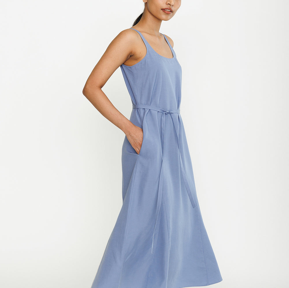 Discover the ultimate in adaptability with this multi-way dress in an eco-friendly Tencel-linen blend – designed so you can wear either the rounded square neckline or high collar in front. Its flowing silhouette and elegant drape flatters every figure while providing maximum comfort. An optional belt allows you to gently cinch the waist. Slip this under a cropped jacket or blazer for the office, or accessorize boldly for the weekend.