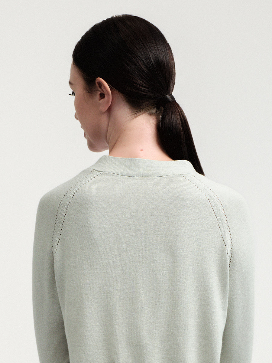 This lightweight cardigan in sophisticated hues is designed to pair with our Ribbed Square-neck Knit Tank. It also makes a chic layer over a dress for work or dinner. Elegant pointelle detailing at the shoulders elevates this high-quality closet essential.