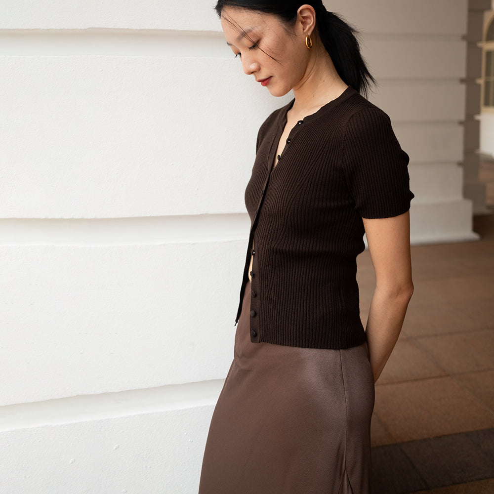Elevate your basics with this elegant knit piece, that you can wear as a top or a light cardigan. Crafted from soft, ultra-fine Merino Wool yarns from renowned Biella mill, it offers an exceptionally smooth feeling and comfortable fit. It's the ideal investment for the chic city girl, for workday or evening occasions.
