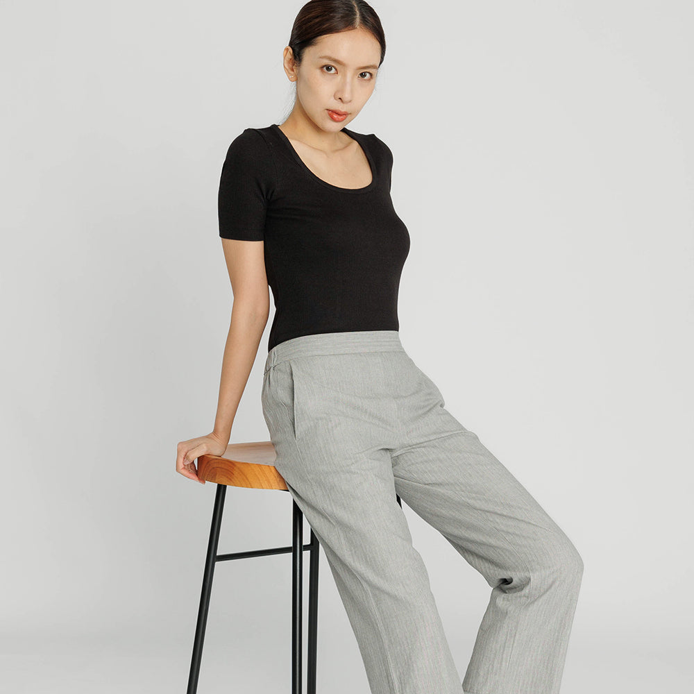A city essential that will become your new work-to-weekend must-have. The fine ribs are both elegant and flattering, with a touch longer-than-usual sleeves for a slimming effect. Made from a luxurious Bamboo-cotton blend, this stylish tee emphasizes breathability, softness and stretch. Tuck it into high-waisted pants or layer with a blazer for easy polish.